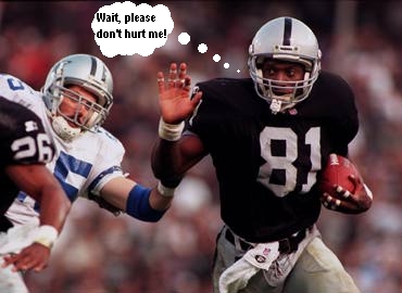 Raider fan. The guy sitting next to me is six-two tall, 240 pounds,